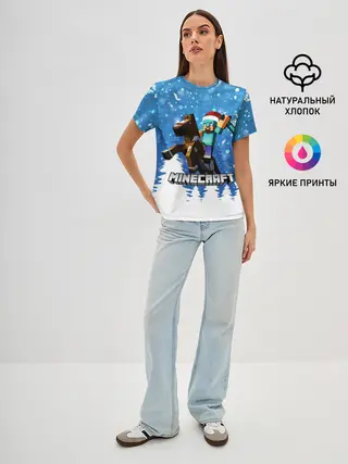 Женская базовая футболка / Новогодний Манкрафт на коне