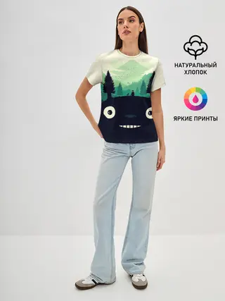 Женская базовая футболка / Тоторо охраняет лес