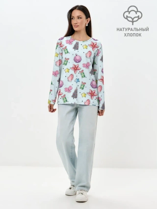 Лонгслив женский. Хлопок / новогодние игрушки