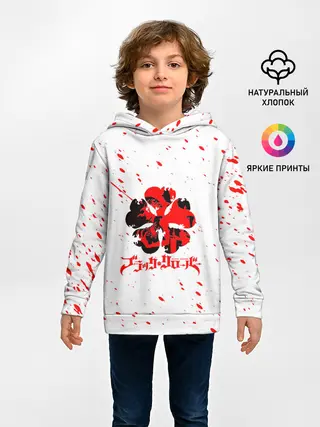 Детское худи / Логотип черный клевер с голубыми брызгами