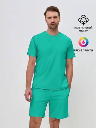 Мужской костюм с шортами / Бискайский зеленый без рисунка