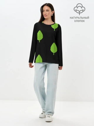 Лонгслив женский. Хлопок / Птица и листочек