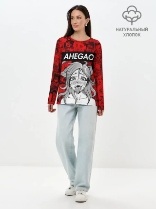 Лонгслив женский. Хлопок / Ahegao red
