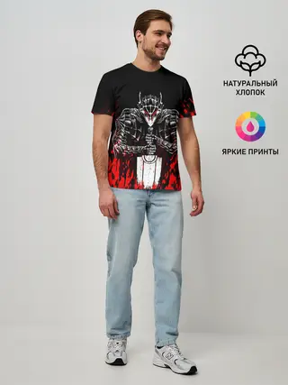 Рюкзак джинсовый / Берсерк маска с красными глазами