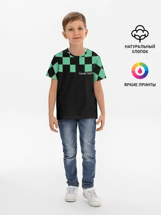 Детская базовая футболка / Kamado Tanjiro зеленые квадраты