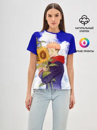 Женская футболка оверсайз / Магическая битва | Подсолнухи