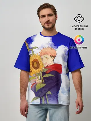 Мужская футболка оверсайз / Магическая битва | Подсолнухи