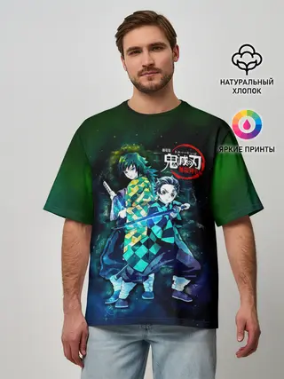 Мужская футболка оверсайз / Гию и Танджиро Kimetsu no Yaiba