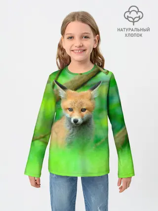 Мужской лонгслив базовый / Лисенок в зеленом лесу