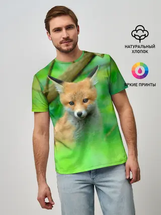 Мужская базовая футболка / Лисенок в зеленом лесу