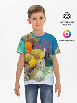 Рюкзак джинсовый / Морской паттерн с крабами и водорослями