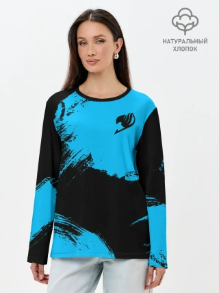 Лонгслив женский. Хлопок / Хвост Феи синие мазки