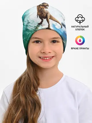Детская базовая футболка / Тираннозавр REX | Серфинг