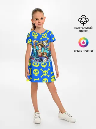 Детское платье / Веселый Монки. Синий фон череп и кости