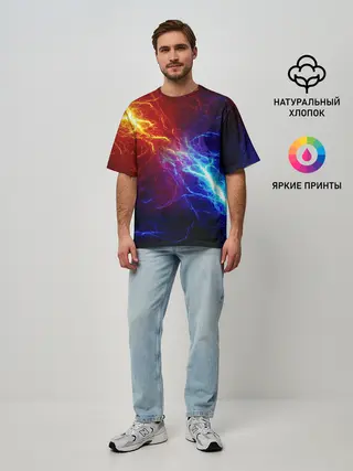 Мужская футболка оверсайз / БИТВА МОЛНИЙ / BATTLE FLASH