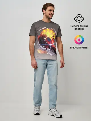 Мужская базовая футболка / Чуя Накахара на мотоцикле взрыв