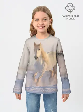 Мужской лонгслив базовый / Белая лошадь на снегу