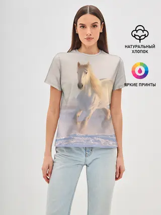 Мужская футболка оверсайз / Белая лошадь на снегу