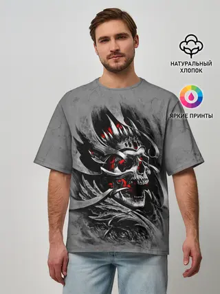 Мужская футболка оверсайз / Skull through metal