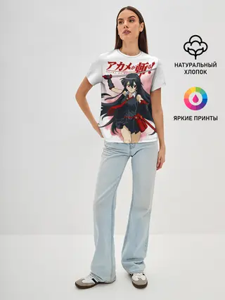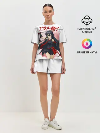 Женская футболка оверсайз / Акаме атакует на белом фоне