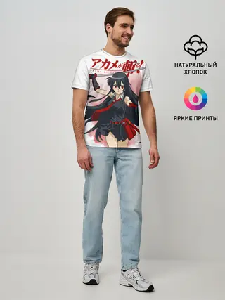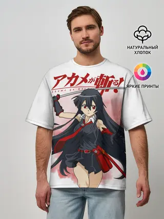 Мужская футболка оверсайз / Акаме атакует на белом фоне
