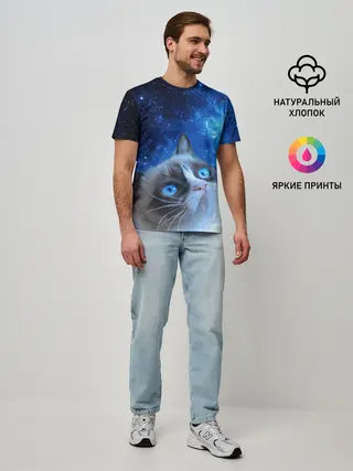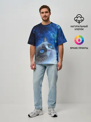 Мужская футболка оверсайз / Сердитый кот в космосе