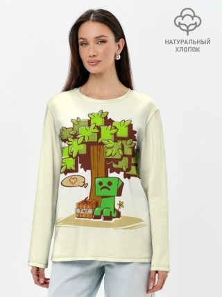Лонгслив женский. Хлопок / Майнкрафт, Крипер