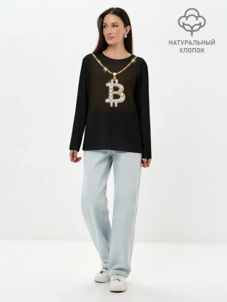 Лонгслив женский. Хлопок / Бриллиантовый биткоин