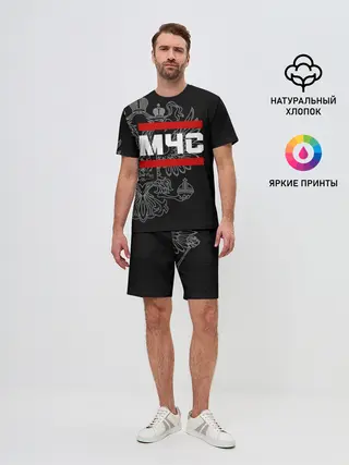Мужская футболка оверсайз / МЧС белый герб РФ