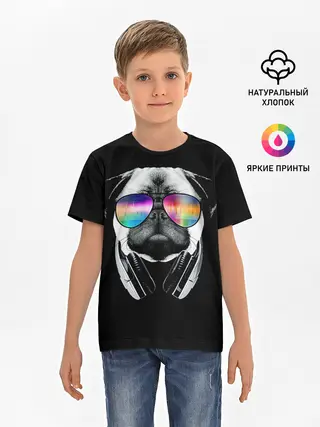 Детская базовая футболка / Мопс в наушниках