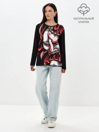 Лонгслив женский. Хлопок / Демон Они