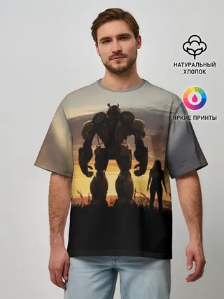 Мужская футболка оверсайз / Бамблби и Чарли на закате