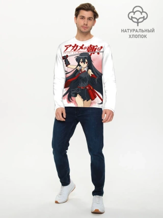 Мужской лонгслив базовый / Акаме атакует на белом фоне