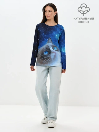 Лонгслив женский. Хлопок / Сердитый кот в космосе