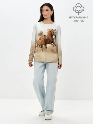 Лонгслив женский. Хлопок / Лошадь с жеребенком
