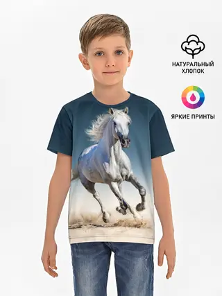 Детская базовая футболка / Серый в яблоках конь