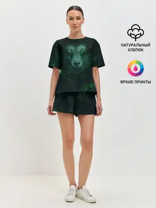 Женская футболка оверсайз / Сибирь. Лесной волк