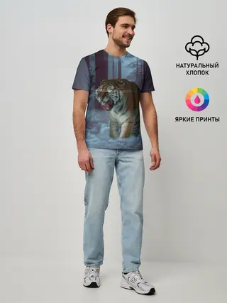 Мужская базовая футболка / ТИГР В СУМЕРЕЧНОМ ЛЕСУ