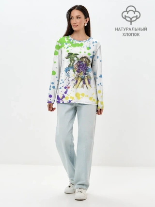Лонгслив женский. Хлопок / Jojo зеленые пятна