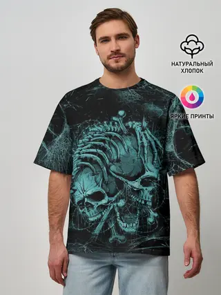 Мужская футболка оверсайз / two skulls