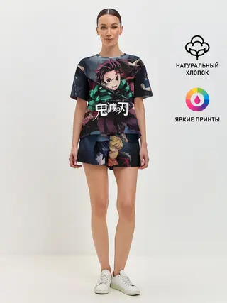 Женская футболка оверсайз / Клинок рассекающий демонов