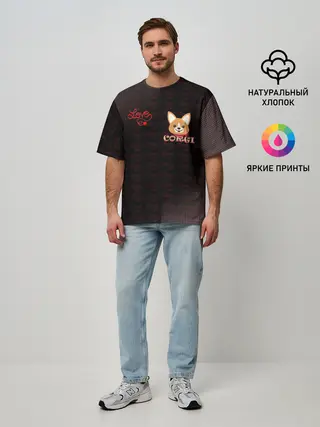 Мужская футболка оверсайз / Корги