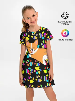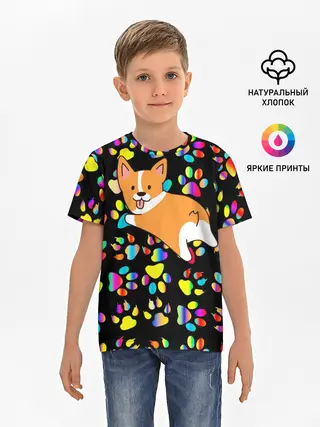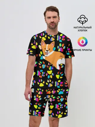 Мужская футболка оверсайз / Корги | Цветные лапки