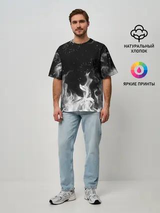 Мужская футболка оверсайз / БЕЛЫЙ ОГОНЬ | WHITE FIRE