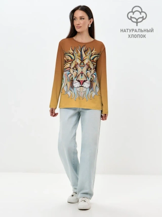 Лонгслив женский. Хлопок / Стилизованный арт ЛЕВ морда