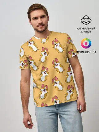 Мужская футболка оверсайз / Радость Корги паттерн