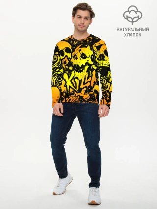 Мужской лонгслив базовый / KILLA оранжевые черепа