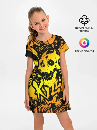 Женская футболка оверсайз / KILLA оранжевые черепа
