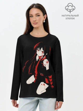Лонгслив женский. Хлопок / Убийца Акаме на черном фоне
