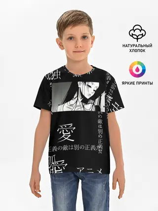Детская базовая футболка / Черно-белый паттерн с иероглифами
